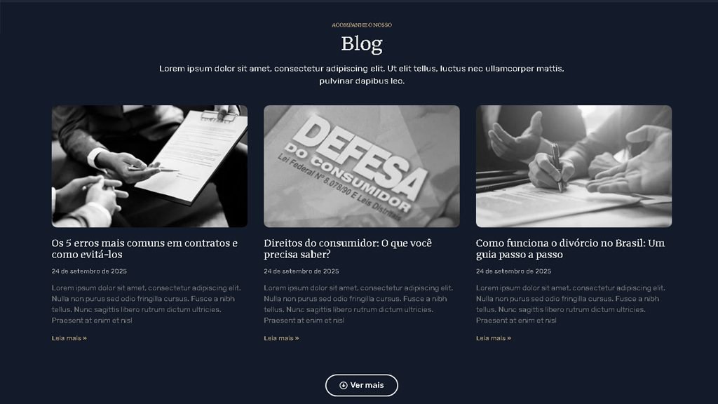 Depois do primeiro projeto, este site institucional para advogados foi o momento de refinamento e expansão. Mais complexo em estrutura e conteúdo, porém muito mais fluido de construir. Já dominava os plugins e widgets do Elementor PRO, o que acelerou todo o processo de desenvolvimento de sites.